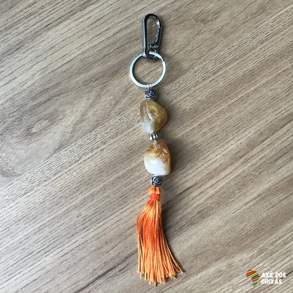 Chaveiro de Citrino com Tassel Laranja