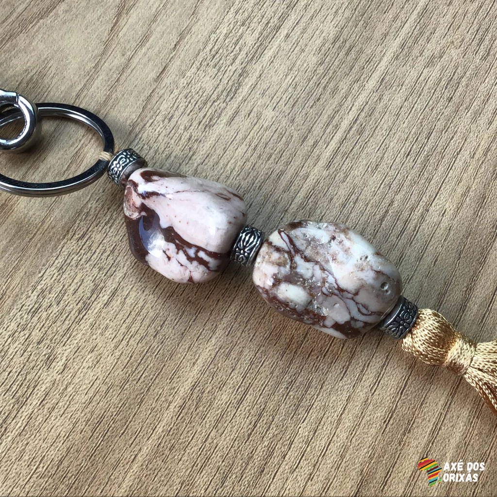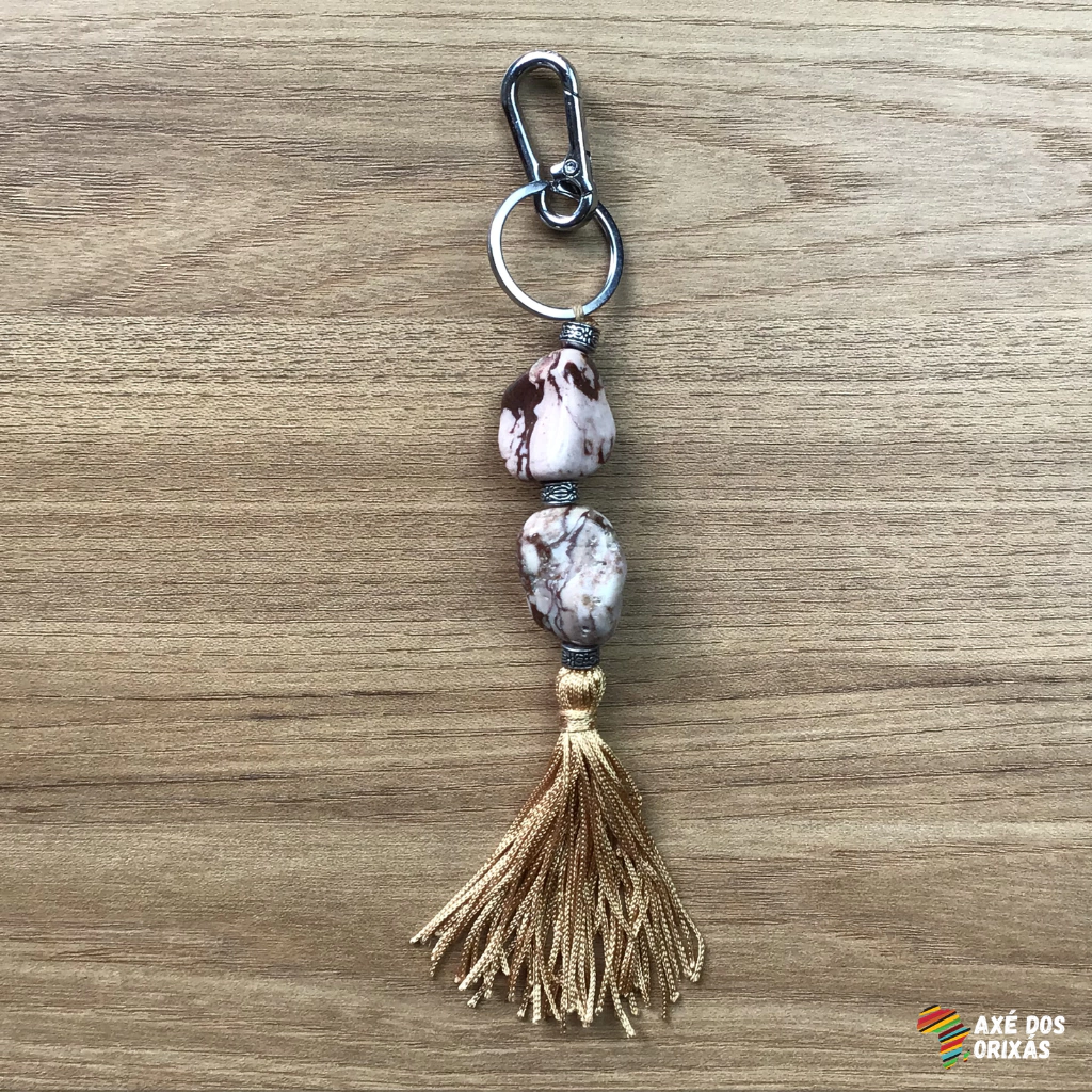 Chaveiro de Jaspe Zebra com Tassel Dourado