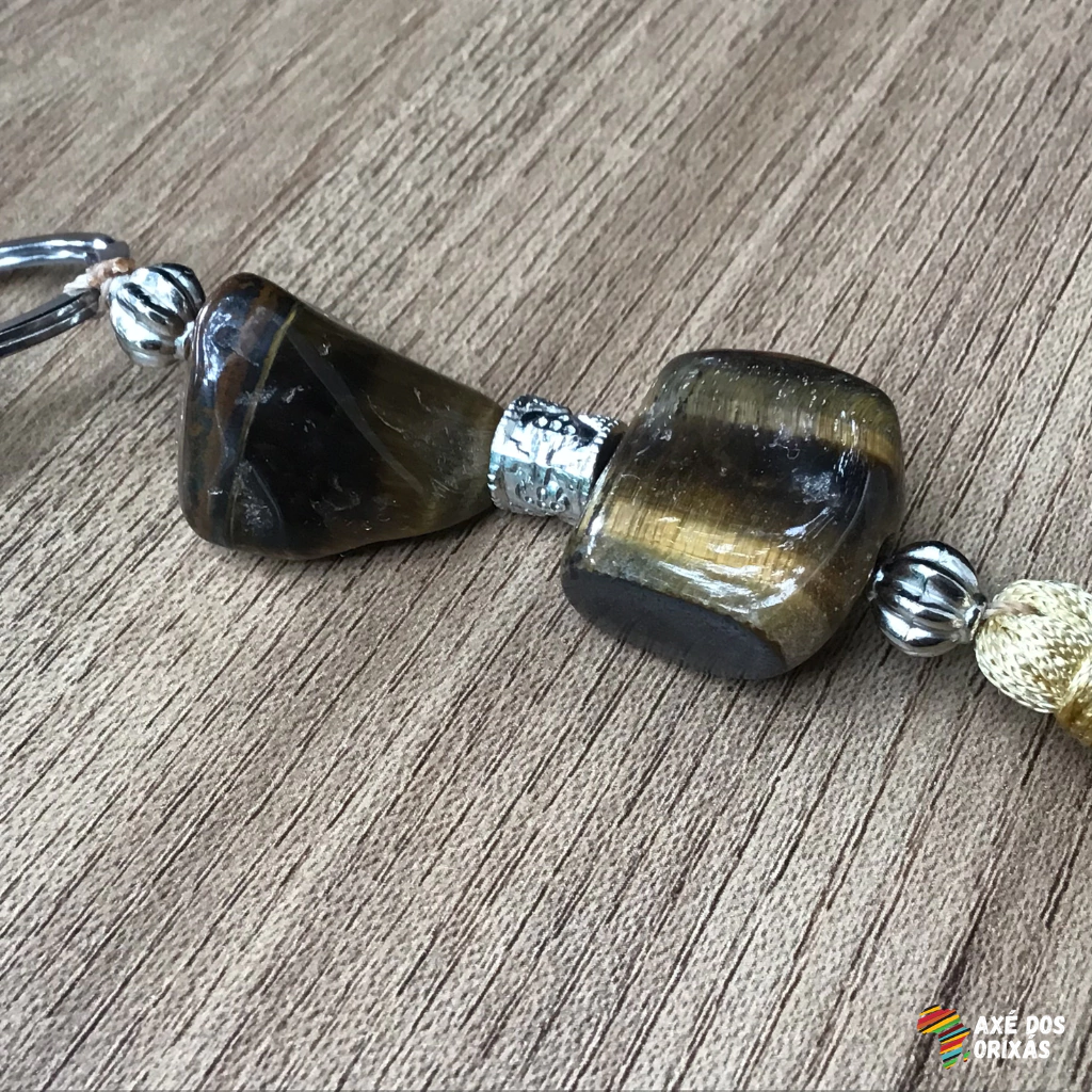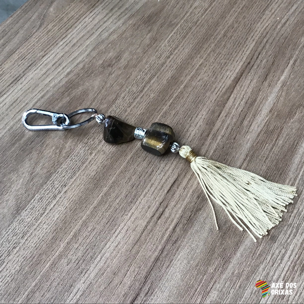 Chaveiro de Olho de Tigre com Tassel Dourado