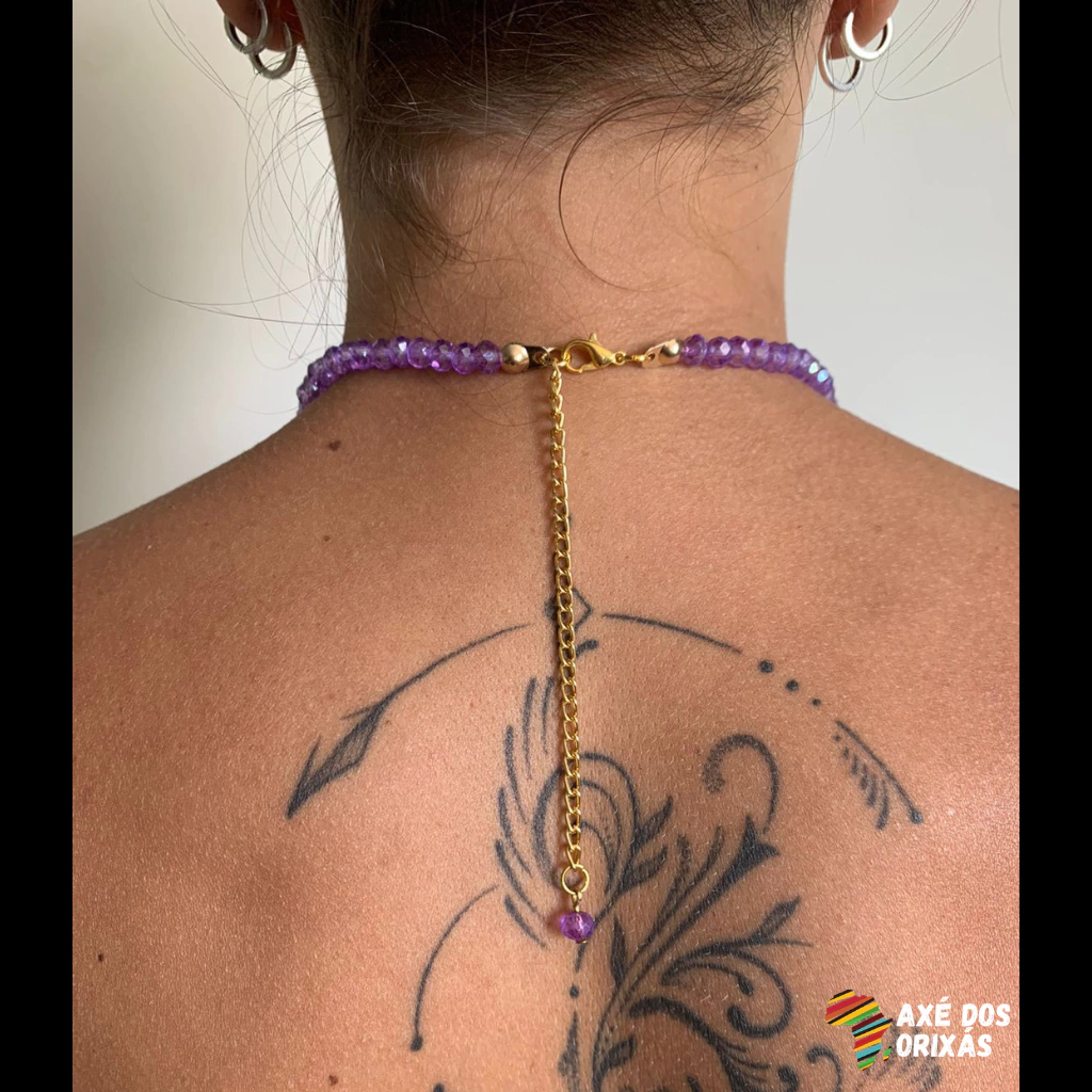 Choker feita de cristais 6mm fecho de mosquetão, com corrente alargadora de níquel.