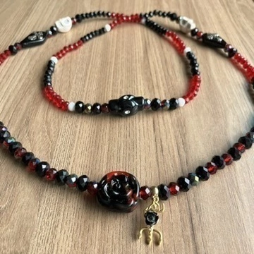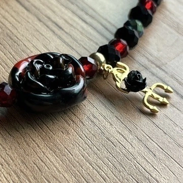 Estilo e Significado: Os cristais e detalhes em murano, como flores e caixões, simbolizam a dualidade de força e beleza, enquanto o pingente de garfo representa a energia protetora das pombagiras. Esta peça é uma combinação de poder e elegância, ideal para quem busca conexão espiritual e proteção no dia a dia.