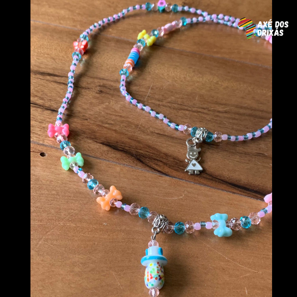 Com pingente de metal de menina, confeccionada com miçanga de vidro de cristais.