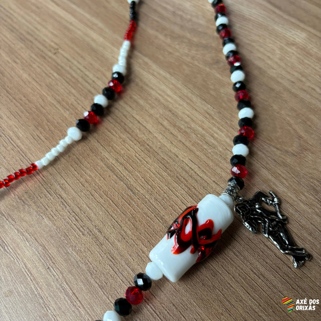 Finalizada com uma firma de luxo em murano e um pingente de níquel representando o malandro, esta guia carrega não só estilo, mas também axé, irreverência e proteção espiritual.